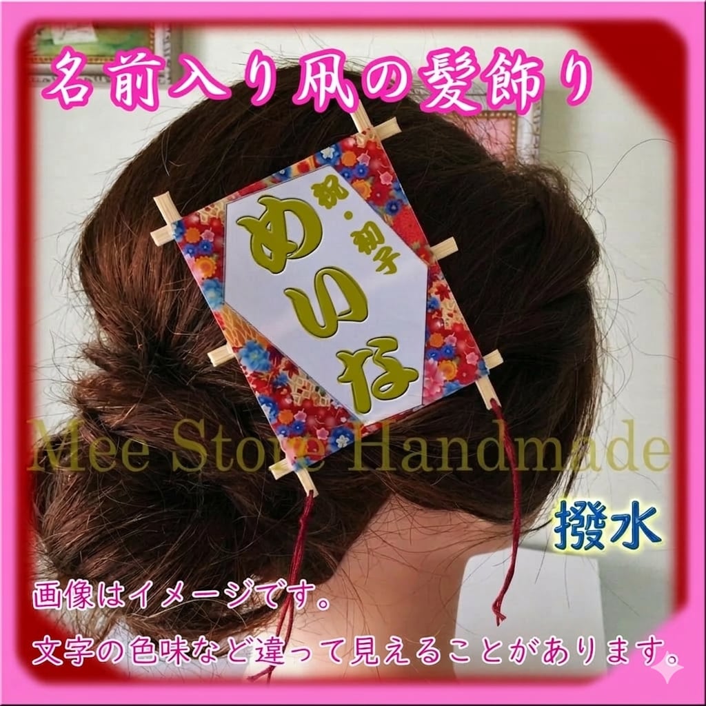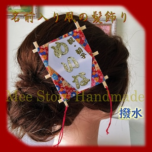 【撥水】名前入り凧の髪飾り / 和柄11種類から選べる ※キラ文字無し